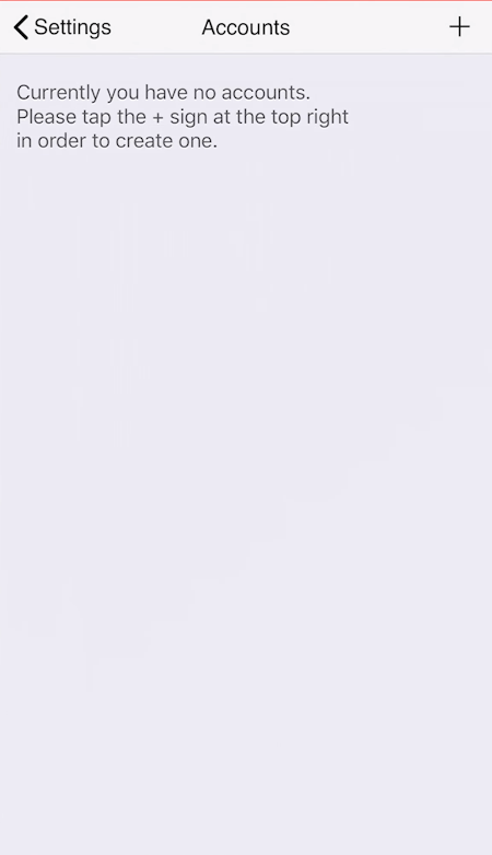 Tap on the + icon in the top-right corner of the screen to add a new account: